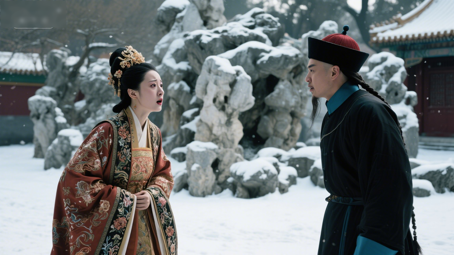 假山后空无一人,只在雪地上留下一串凌乱的脚印,和一支掉落的、被踩得变了形的金步摇。