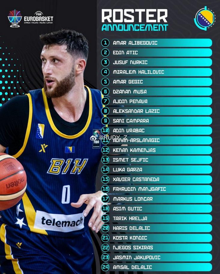 雷速体育7月4日讯 根据波黑篮协的公示最新一期的波黑男篮集结名单,NBA球员努尔基奇、加尔扎领衔,阵容还有前NBA球员穆萨和归化球员Xavier Castaneda。