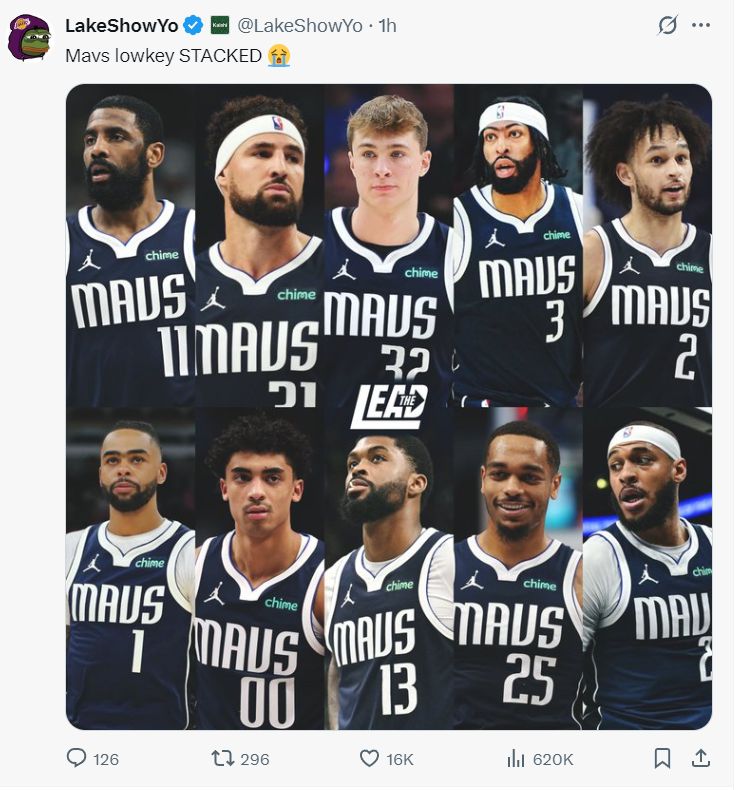 湖媒Lale ShowYo晒出下赛季独行侠的10人轮换写道:独行侠实力雄厚!